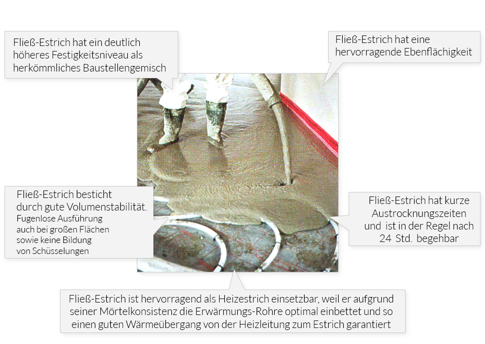 Wir liefern Fließ-Estrich (Anhydrit u. Zement) - der Estrich mit den vielen Vorteilen auch für Sie ! Welche Vorteile Ihnen diese Estriche bieten, können Sie hier erfahren.